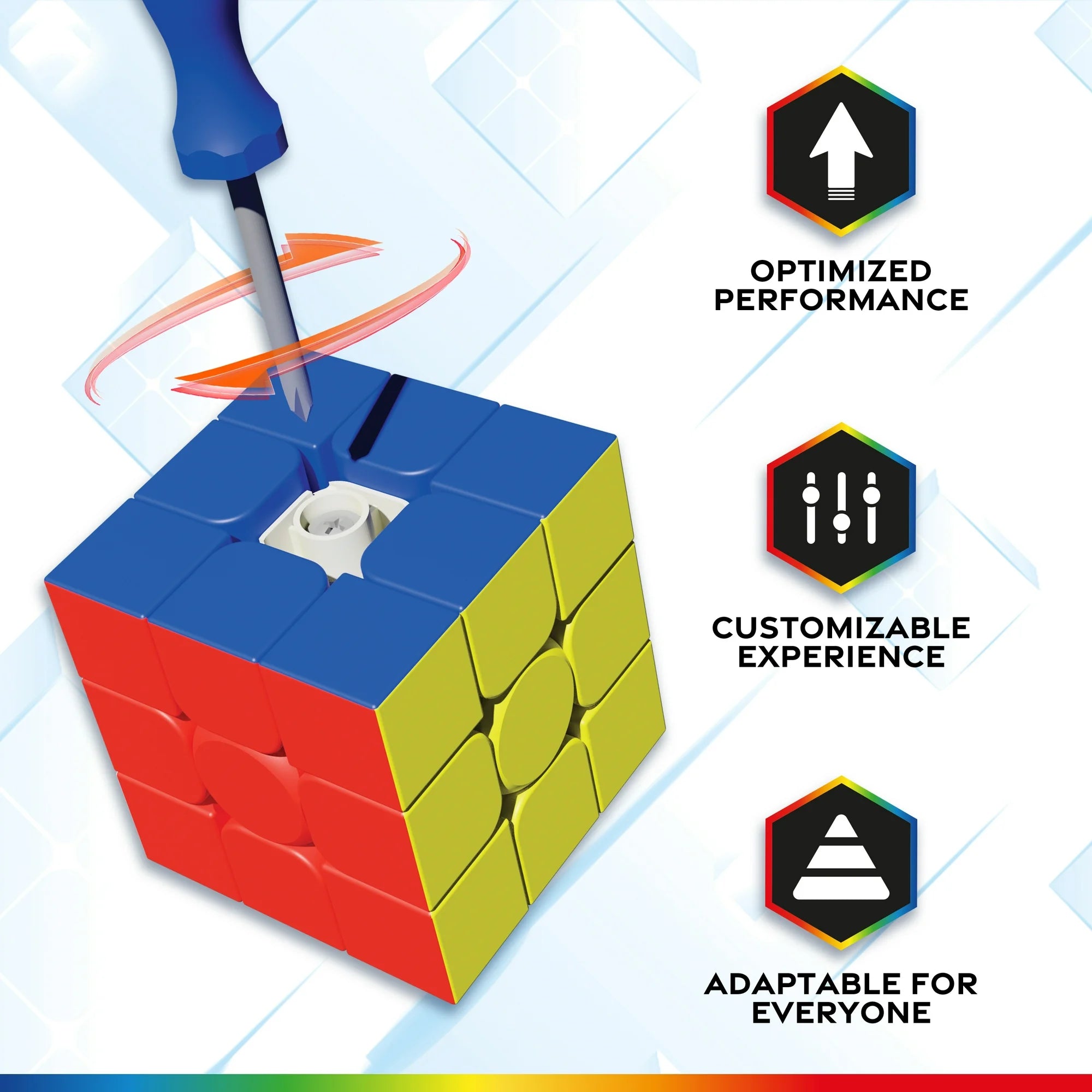 Are you ready to try your hand at beating the World Record for fastest cube puzzle completion? NEXcube by Goliath offers unparalleled, ergonomic sliding action with adjustable elasticity designed to fit any user's personal style. With a flick of the wrist, users can customize flexibility to meet the needs of even the most adept.