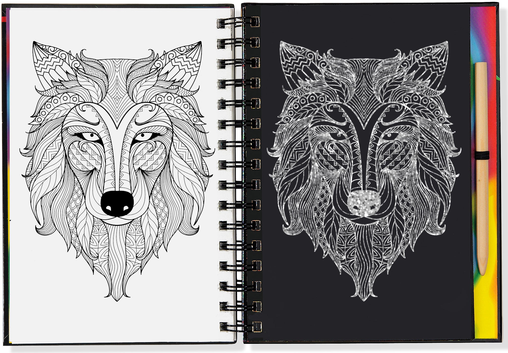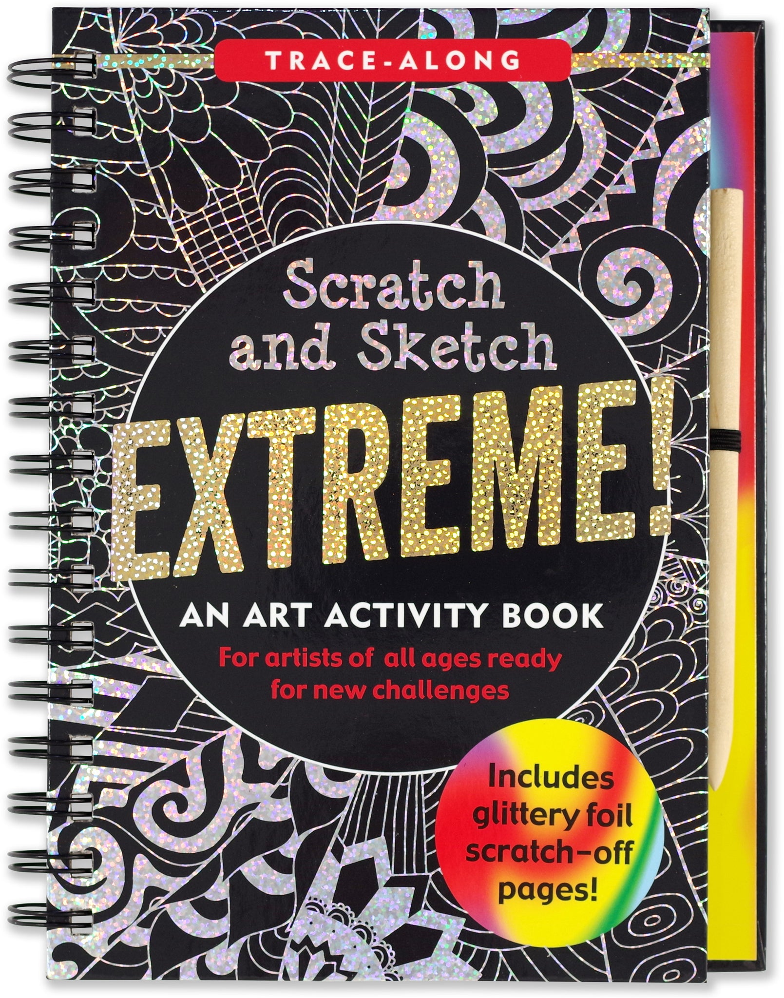 This is a Trace-Along title! White outlines on black scratch-off pages create a fun way for younger children to trace illustrations. Shrink-wrapped with a wooden stylus for drawing on black-coated paper to reveal colors beneath. 64 pages. Includes 20 scratch-off, 20 illustrated, 20 sketch pages. 6-3/8'' wide x 8-1/2'' high; wire-o bound hardcover.