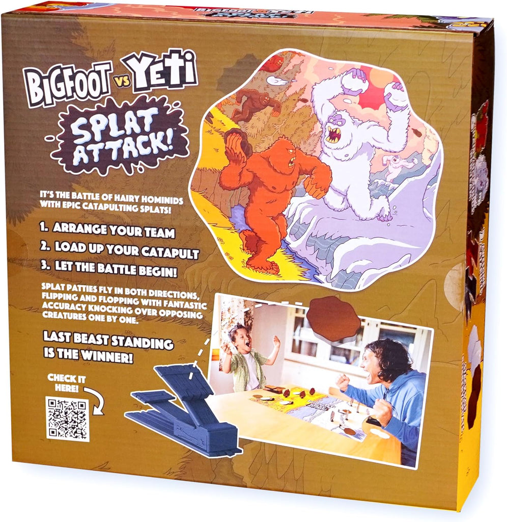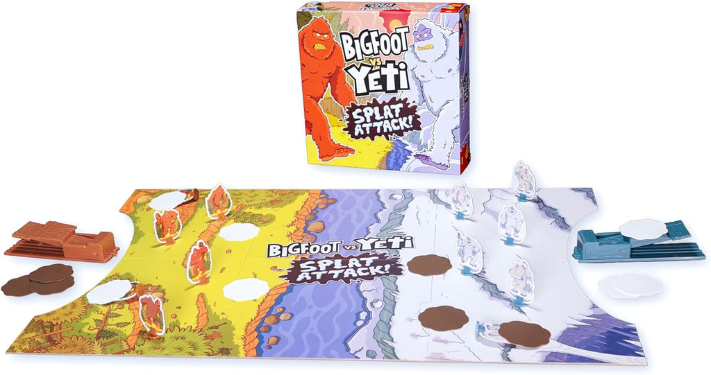 - Includes 6 Bigfoots, 6 Yetis, 10 splat patties, 2 catapults, and 1 game board. For 2 players.