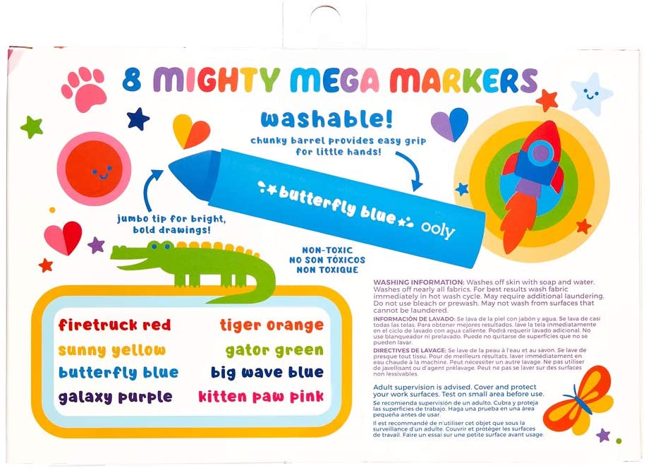 When your little one is ready to make their big mark choose Mighty Mega Markers. These 8 vibrant washable markers are chunky and easy for little hands to hold. The triangle shaped pointed tip allows drawing thin and thick lines for the young creator.