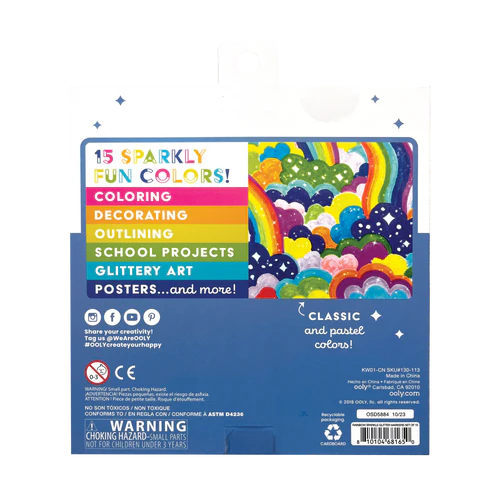 When you really want your creativity to sparkle, try drawing and coloring with these glitter markers. This set of rainbow sparkle glitter markers includes 10 classic colors, like red and orange, along with 5 pastel shades, like pink and light blue. And while each of these 15 markers may have their own distinct radiant color, they all add a glistening shimmer with every mark they make! Using glitter markers for coloring will not only amp up your drawing game, it’ll remind you that sometimes, life deserves a little flare!
