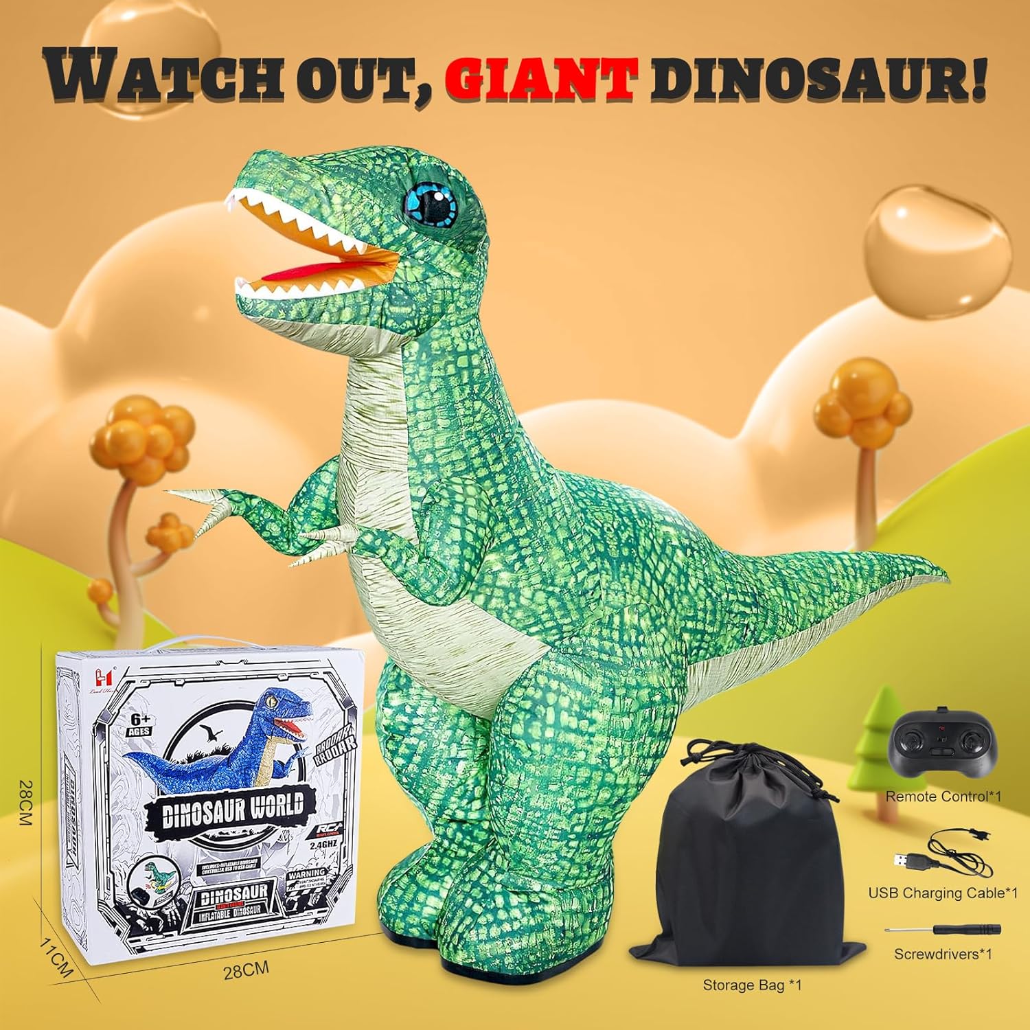- AUTOMATIC INFLATION - This inflatable dinosaur remote control toy stands at an impressive 35 inches tall and inflates completely in just 20 seconds! No more struggling with pumps or complicated inflation processes. Simply install the batteries and press the button for easy startup. It's a great toy for kids to explore the prehistoric world with their imagination and creativity.