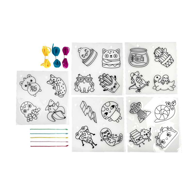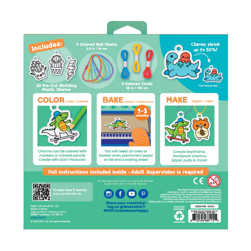 Turn a ho-hum afternoon into a good time with this shrink art kit! It includes 20 quirky charms, three differently colored cords, and five differently colored ball chains. You simply provide the markers or color pencils and the oven! Made from lightweight plastic, these charms are perfect for hanging on a backpack or keychain!